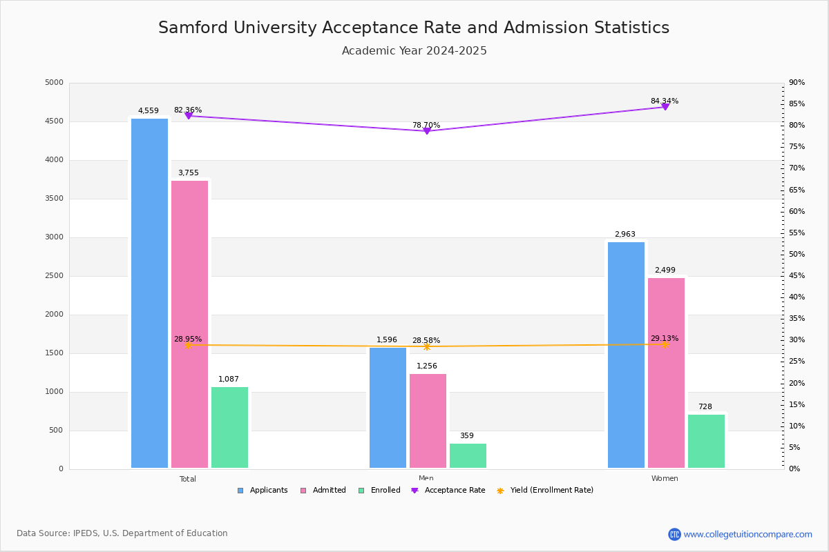 Samford University Tuition, Fees, Grants Law School Transparency , A total of 4,541 students applied and 3,724 were admitted to the school.